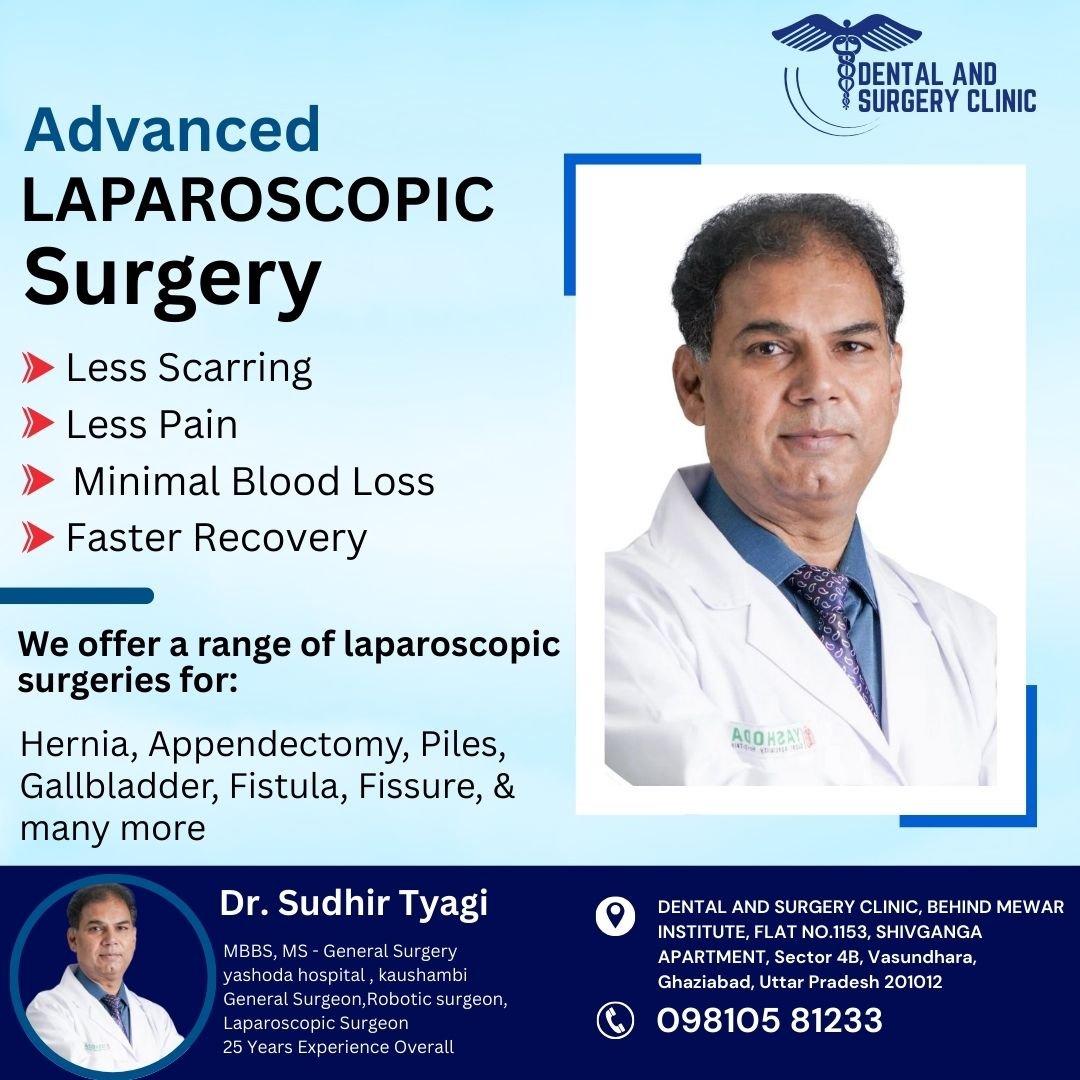 “Dr. Sudhir Tyagi – Best Robotic Surgeon | Best General Surgeon | Laser Surgeon For Piles | Laparoscopic, Hernia, Gall Bladder Surgeon laproscopic Senior consultant surgeon practising since last 23Years, Expertise in all type of laproscopic and minimal access surgery like hernia, gall bladder, appendix,uterus removal and cancer , lazer surgery for piles. Working in yashoda hospital Kaushambi and along with own clinic.”